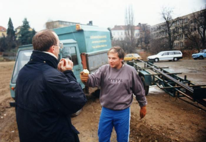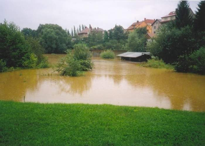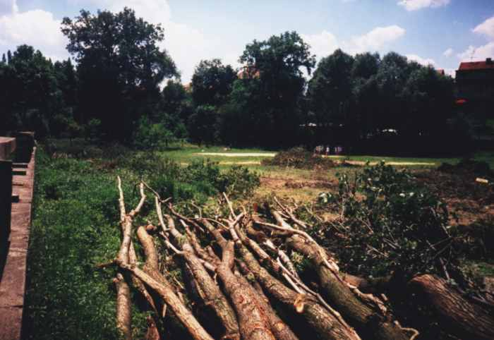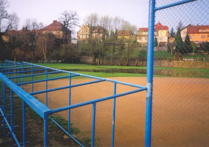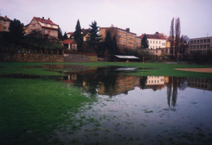 Fotografie stadionu - stavba, povodně