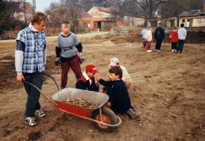 Hřiště vyrostlo v roce 1997 na místě bývalé školní zahrady. Více se dozvíte v sekci Hřiště a také v Historii.