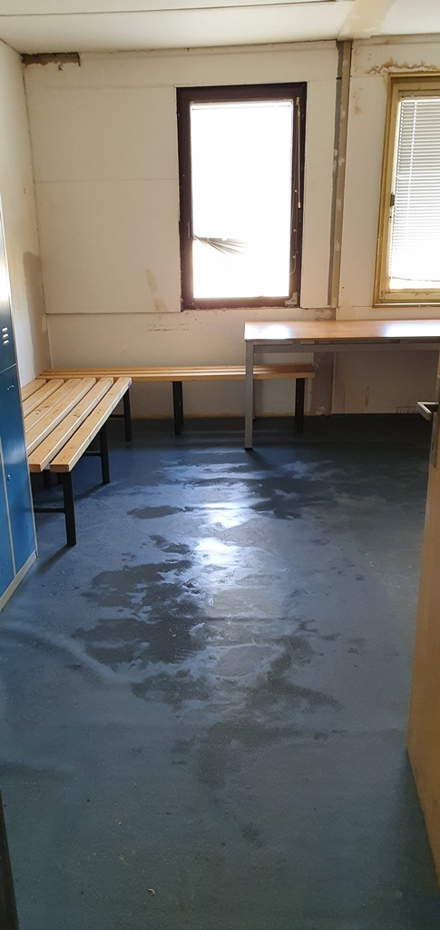 Brigádníci provedly vyčištění herní plochy od větví, listí a dalších nečistot, rovnání plochy. V šatnách bylo zprovozněno hygienické zázemí, proveden úklid a nastěhování vybavení z tělocvičny.