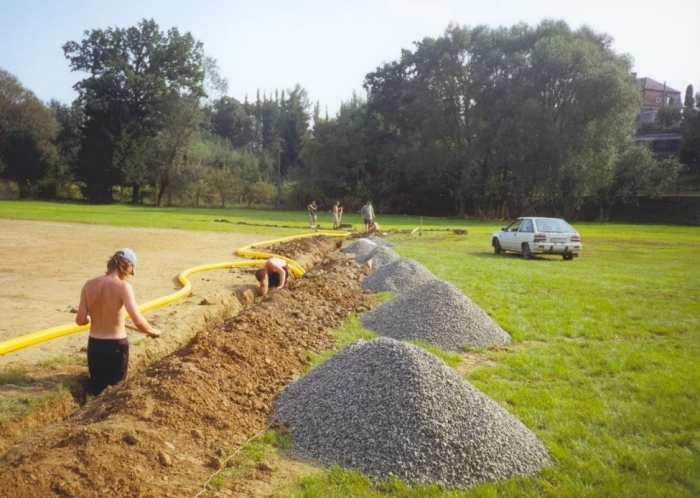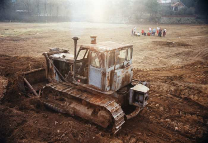 Fotografie stadionu - stavba, povodně