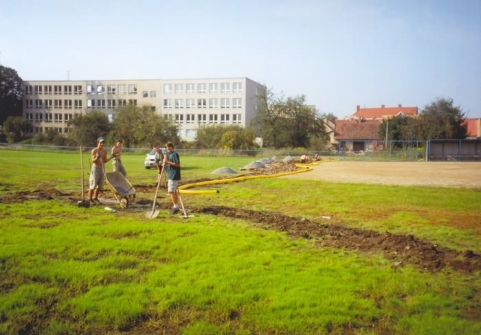 Hřiště vyrostlo v roce 1997 na místě bývalé školní zahrady. Více se dozvíte v sekci Hřiště a také v Historii.