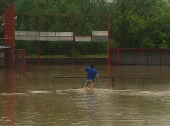Naplánováno bylo překopávání a zakopávání mety, HR tyče, plení hřiště, tunelů a bullpenů, nařezání a vyskládání dřeva, natírání apod. Místo této činnosti nám ale nedotažený kohoutek připravil jiné úkoly: vynášení materiálu, přesouvání věcí do horních polic, plavání a přátelská výpomoc v sousední tělocvičně, která má podlahu asi 2 m pod úrovní terénu.