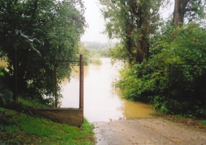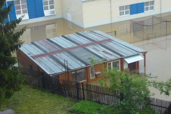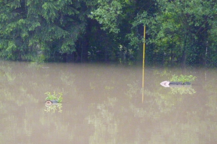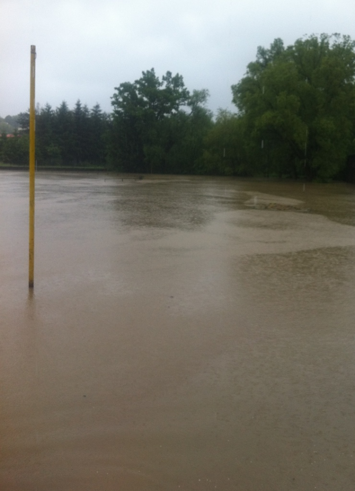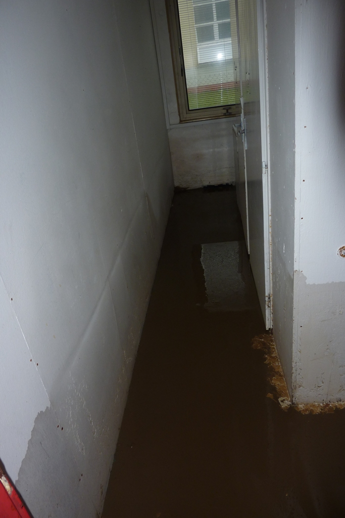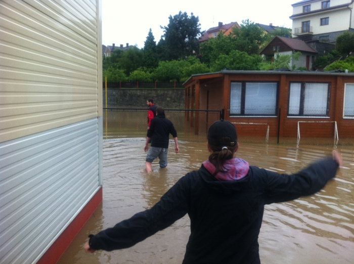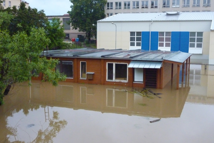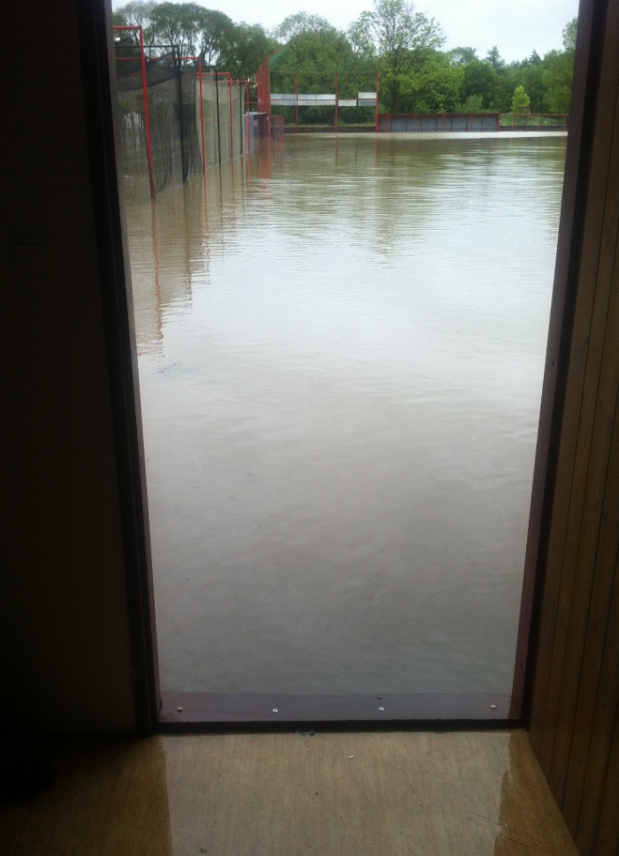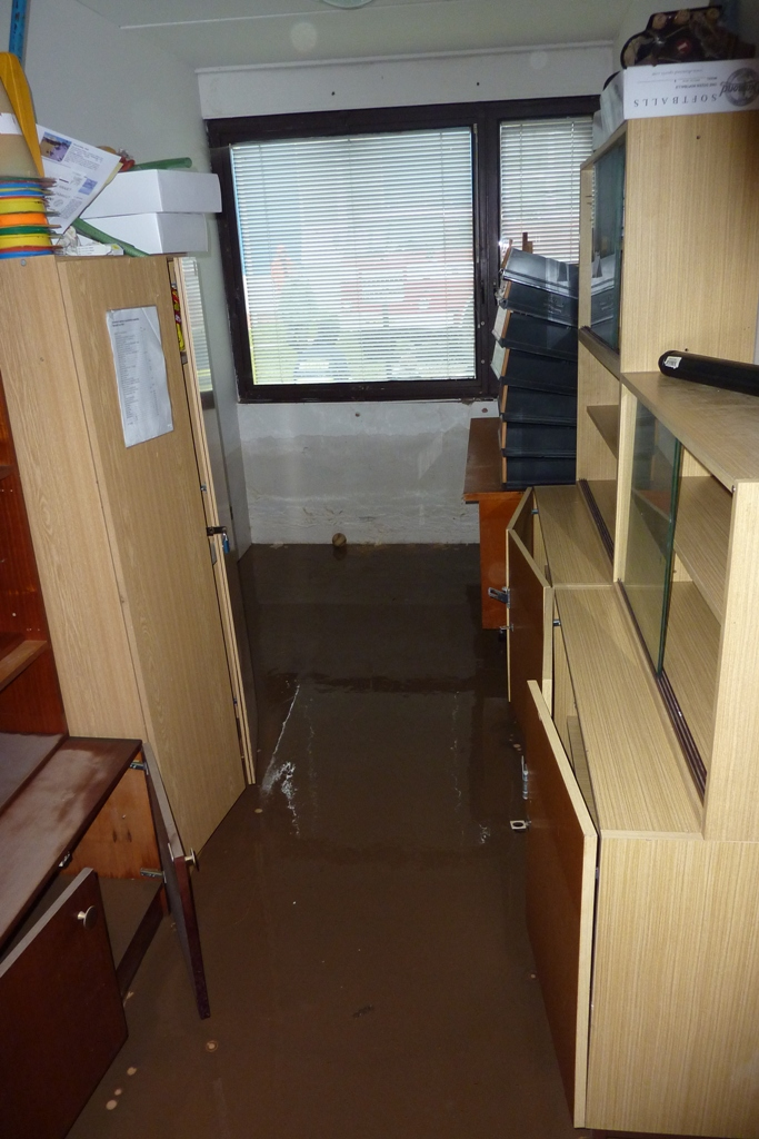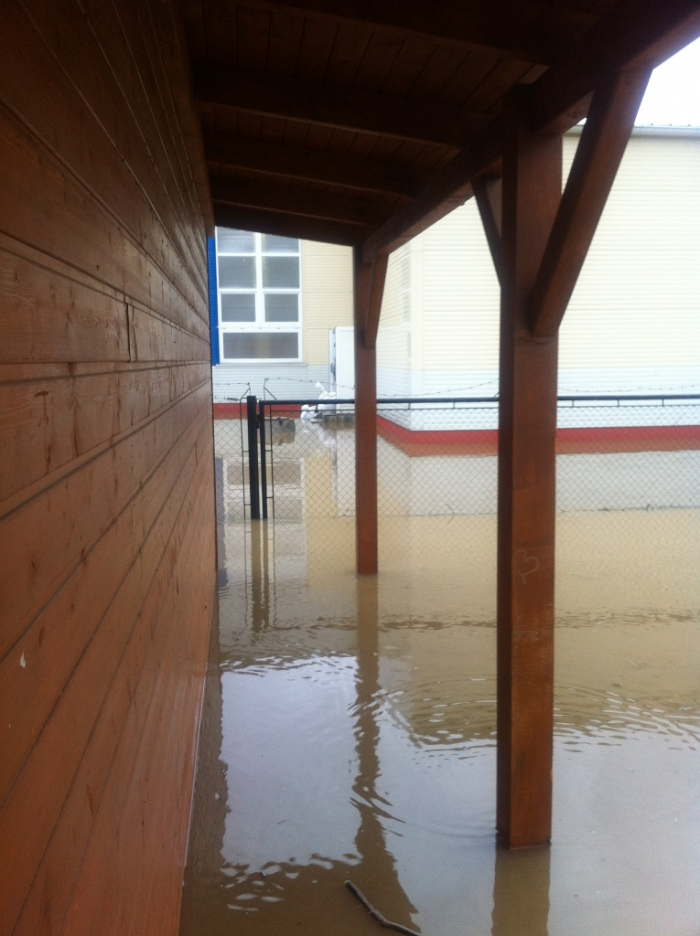 Povel opustit loď byl vydán ve 12:30, když se voda dostala přes práh, poté voda stoupla na maximum viditelné na fotkách (foceno 20:20). Pondělí sice stále prší, ale voda už poklesla.