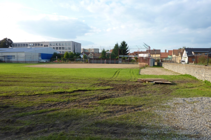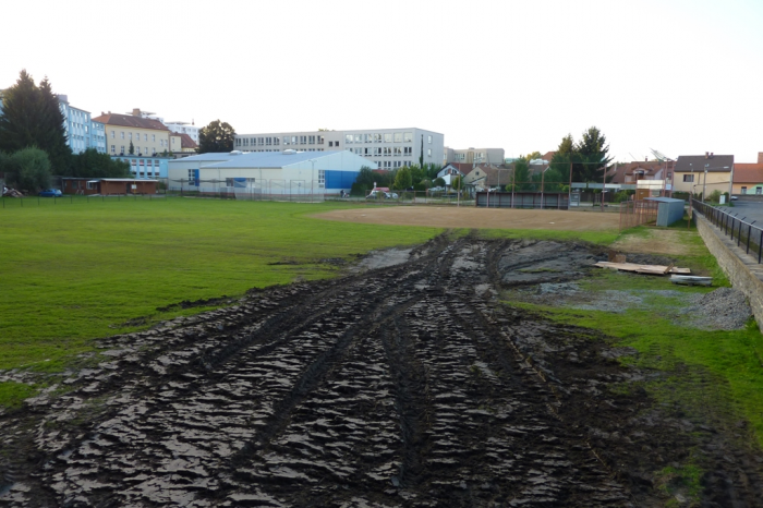 Práce, zdánlivě jednoduché, byly komplikovány nejen nestálostí počasí v době provádění, ale především složitostí podloží, na kterém je hřiště vybudováno. Hřiště je na bývalém mlýnském rybníku, zaneseném jílovitými naplaveninami (místní zeminu by ocenil každý hrnčíř a majitel keramické dílny), spodní vodu nalezneme na hřišti už pár desítek centimetrů pod úrovní terénu (při dešti je dokonce nad terénem).