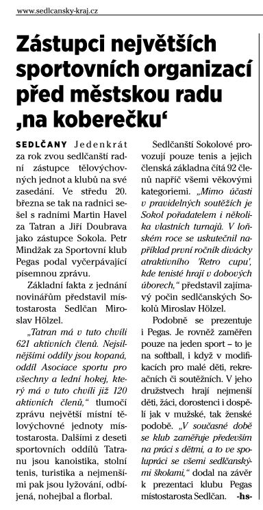 Přehled vybraných článků z 24 ročníku Sedlčanského kraje (2013). Všechny články týkající se SK Pegas Sedlčany se sice zachytit nepodařilo, ale i tak se můžete kochat. Děkujeme za spolupráci sportovní redakci SK, jmenovitě Jiřímu Práškovi a všem ostatním přispěvatelům.