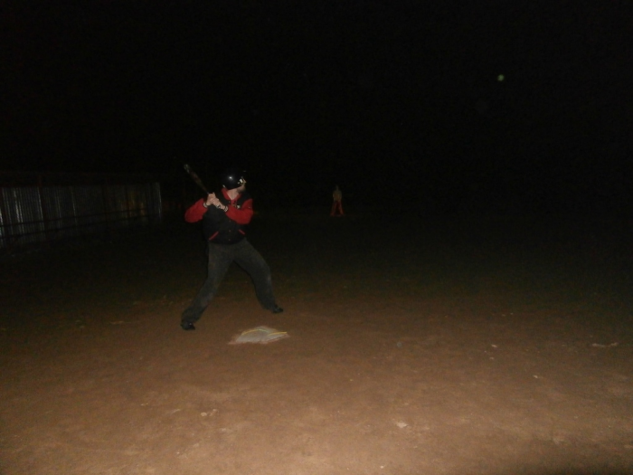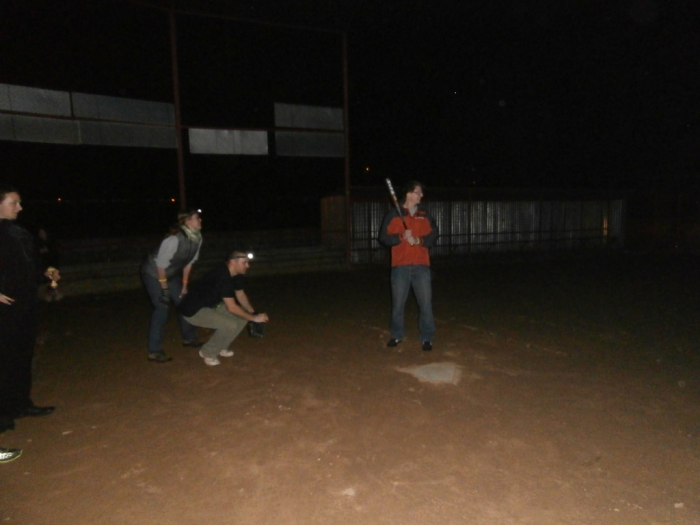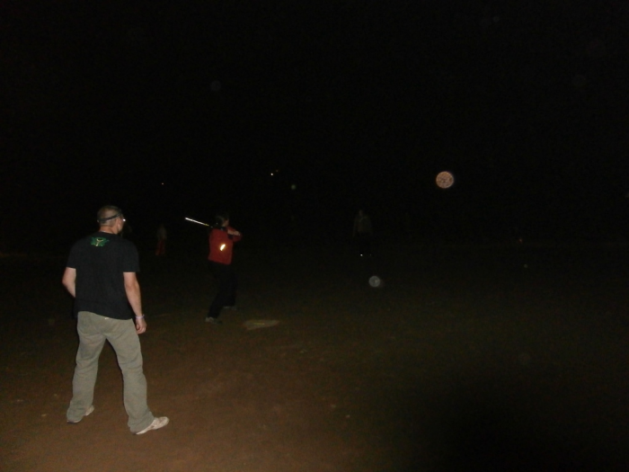 Po setmění, když už byla úplná tma, proběhlo testování možnosti uspořádat noční zápas. Nutno zmínit, že sedlčanské softballové hřiště nemá noční osvětlení a nejbližší lampy veřejného osvětlení na plochu nedosvítí. Zájemci o hru se vybavili reflexními a fluorescenčními předměty, čelovými baterkami a podobnými pomůckami a pustili se do hry. Na hře sice bylo patrné, že handicap tmy je skutečně velký, ale hra přinesla důležité poznatky pro uspořádání dalších nočních zápasů a řadu vylepšení. Softball sice není ze sportů, které mohou hrát nevidomí, ale s využitím zábavních světélkujících předmětů se lze bavit softballem i ve tmě.