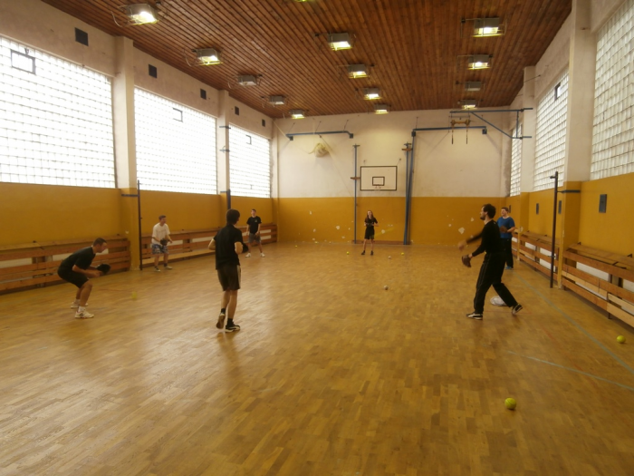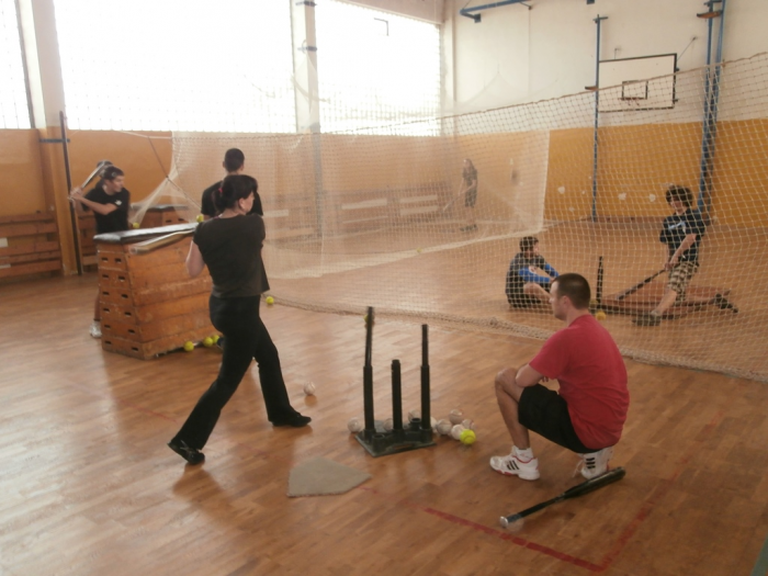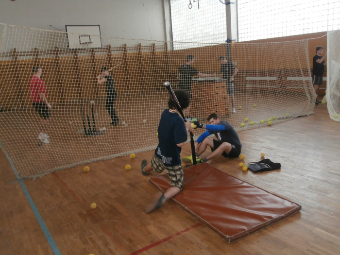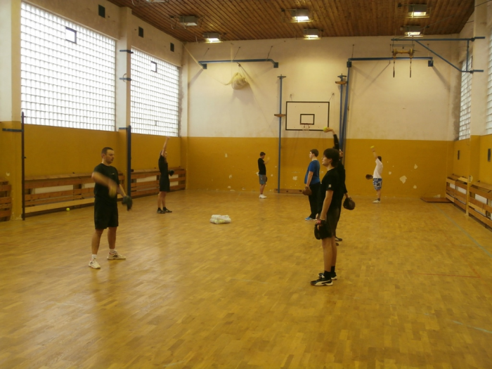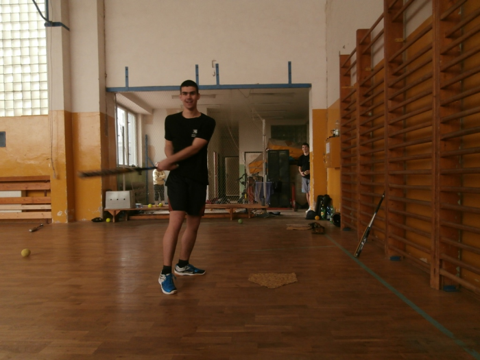 V tělocvičně KDS se začalo trénovat v 9:00 a hlavní část tříhodinového dopoledního bloku byla věnována obranným dovednostem. Po polední přestávce se naopak muži a junioři věnovali odpalování při tréninku útočné hry.