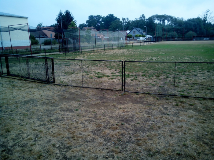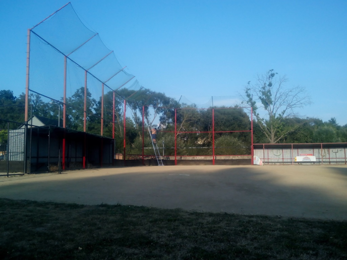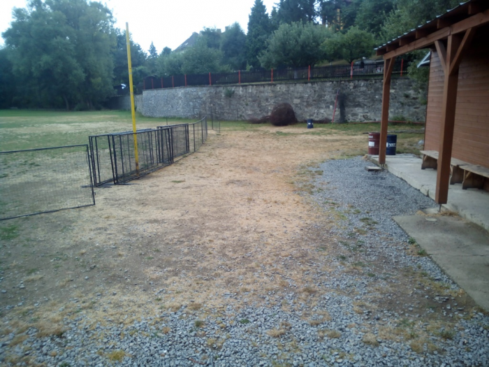 O brigádě naplánované na 15.8. probíhalo natírání a opravy back-stopu.
