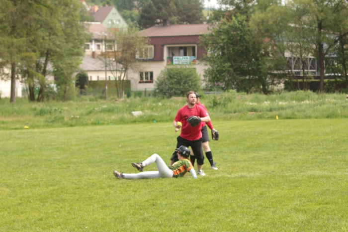 Od pátku 19. do neděle 21. května byla Pegas aréna v Sedlčanech a přilehlá „Mrskošovna“ plná ryku. V pátek totiž členové SK Pegas dokončovali přípravy na jednu z největších akcí letošní sezóny. Pro Pegas slowpitch CUP bylo nutné nejprve vlastní hřiště přestavět na slowpitchové vzdálenosti a následně z plácku na Mrskošovně vytvořit úplně nové hřiště odpovídající regulím České slowpitchové ligy. Turnaj osmi družstev z celé střední Evropy začal v sobotu ráno a i díky spravedlivému, ale náročnému rozpisu dal všem zabrat. Systém každý s každým a následná bitva prvních třech ve finálových zápasech přinesl 30 zápasů. Podrobné výsledky a komentáře ředitele ligy můžete nalézt na oficiálních stránkách České slowpitchové ligy. SK Pegas vstoupil do turnaje utkáním proti Vampírům z Merklína dobrou hrou a ještě na konci hracího času očekávali Pegasové výhru 3:7. Vampíři ale ovládli dohrávku a zápas otočili na 8:7. Proti Crew 42 se situace obrátila, tentokrát domácí Pegasové otáčeli v dohrávce skóre ve svůj prospěch a vyrovnané utkání vyhráli 6:5. V utkání s hvězdami z Trnavy Pegasu nevycházel útok a poté, co si slovenští přátelé udělali náskok, chyběla domácím Pegasům síla otočit utkání (1:11). První den zakončili Pegasové v zápase s trutnovskými Rytíři. I tentokrát byl začátek zápasu slibný, ale od druhé směny Rytíři ovládli zápas silnou pálkou a sedlčanští hráči, řádně otlučení z předchozích zápasů neměli sílu vzdorovat (18:1). Pro druhý hrací den Pegasové doplnili energii a hráče ze záloh dorůstajících v mládežnickém oddíle a s německými Hangarounds zpočátku drželi krok. Třetí směna, ale naplno vyšla Němcům. Každý odpal umístili šikovně na zem mezi hráče a disciplinovaně postupovali po metách. Tato směna jim přinesla 14 bodů a konečné skóre 1:17. Posledním soupeřem pro sedlčanské družstvo byli Waynes Pardubice. Waynes se v dosavadním průběhu turnaje ukázali jako tým s nejlepší obranou. Jediný tým, který proti nim dokázal bodovat, byli Rytíři, a jak se následně ukázalo, tak i SK Pegas Sedlčany. Konečné skóre 14:3 sice nevypadá na drama, ale zápas byl pohledný. Celkem čtyři homeruny a spoustu skvělých obraných zákroků hře dodávalo šťávu. Domácí Pegasové si oproti loňsku v umístění polepšili, ale sedmé místo pořád neodpovídá tomu, čeho je tým schopen a pro příště čekejme mnohem ambicióznější výsledek. Velký dík posíláme všem, kteří se postarali o veškerou práci spojenou s turnajem a zajištěním jeho chodu. Díky účasti mládežníků i jejich rodičů za pomoc při ovládání scoreboxů, úpravy areálu a chod celé akce. Díky za nasazení hráčů při přípravě areálu na turnaj, za práce při turnaji i za úklid a úpravy po turnaji. Děkujeme i všem týmům za skvělou atmosféru, kterou při tomto turnaji pravidelně utvářejí. Hraje se nám s vámi dobře.
