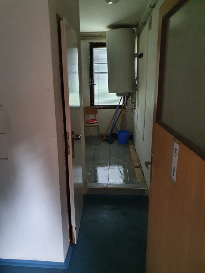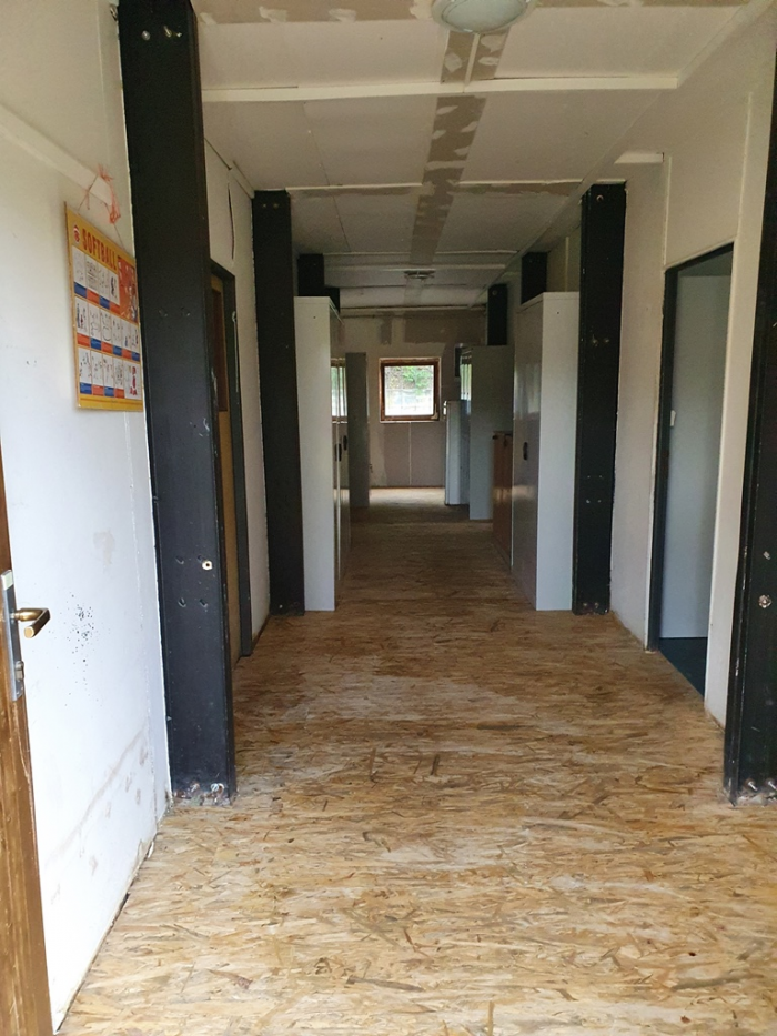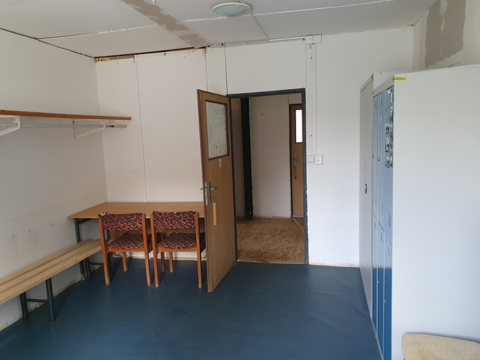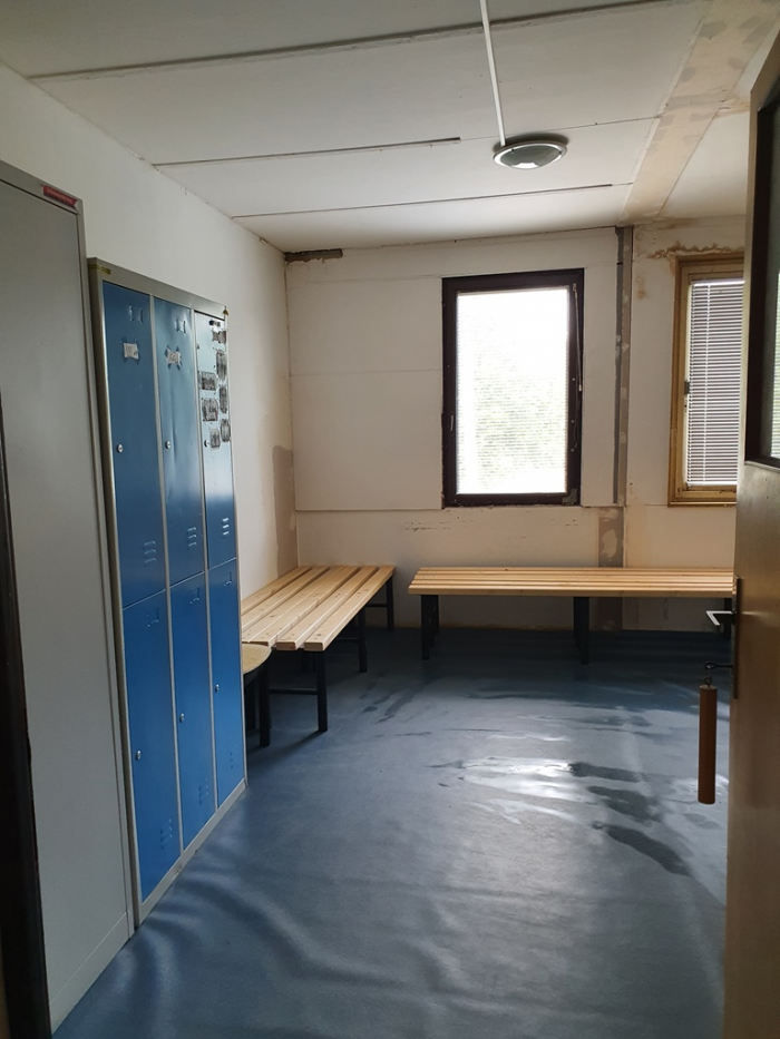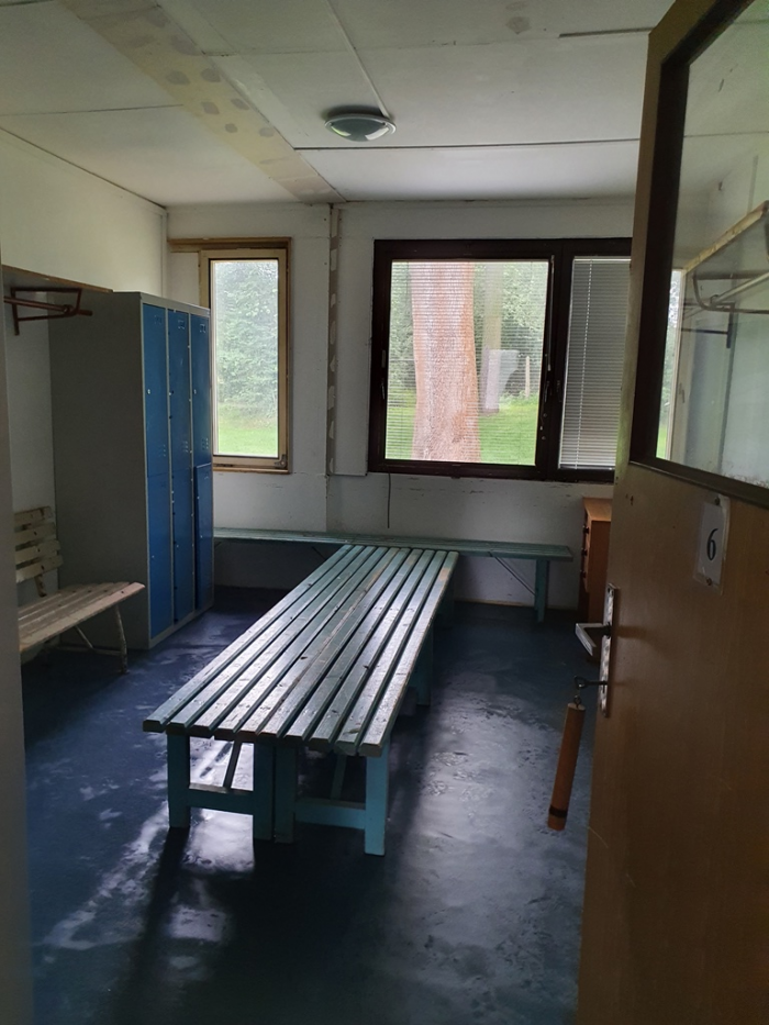 Úklid šaten a hřiště, vypletí, odkamenění a rovnání pole.