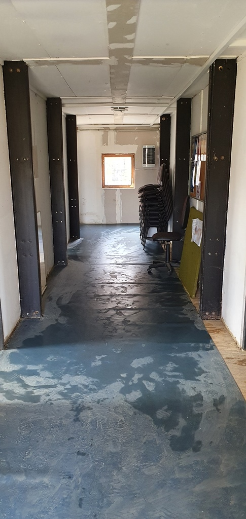 Brigádníci provedly vyčištění herní plochy od větví, listí a dalších nečistot, rovnání plochy. V šatnách bylo zprovozněno hygienické zázemí, proveden úklid a nastěhování vybavení z tělocvičny.